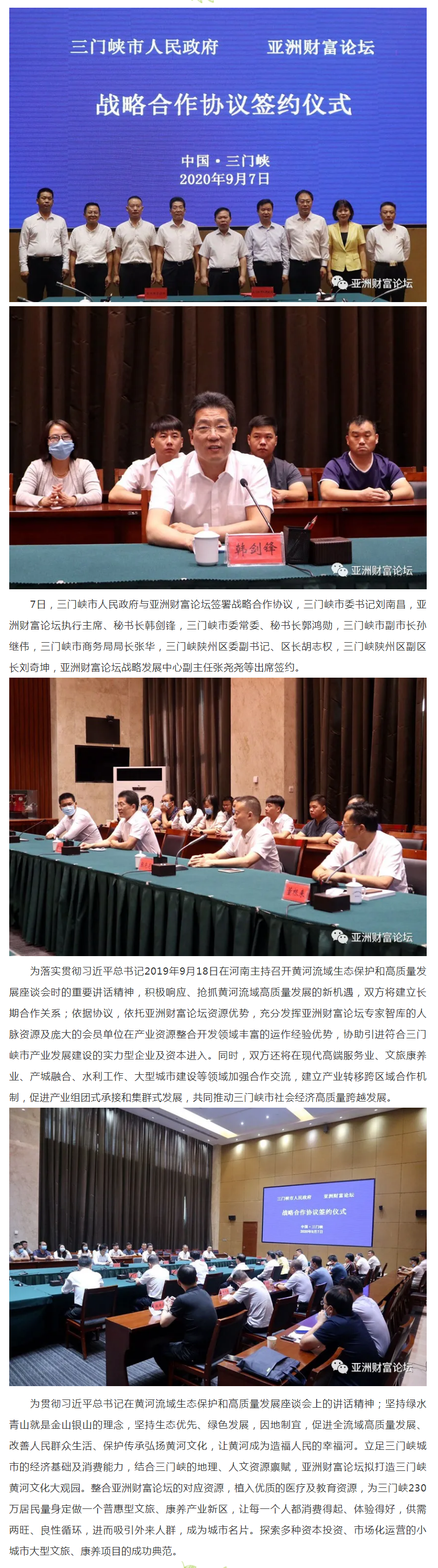 三门峡市政府与亚洲财富论坛签署战略合作协议