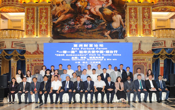2016年7月23日,由亚洲财富论坛主办的“一带一路”驻华大使行、文化交流活动中国·山东站圆满落幕。伊朗、 埃及、秘鲁、尼泊尔、马其顿、克罗地亚、智利、尼日利亚、亚美尼亚、巴林、埃塞俄比亚、巴哈马、阿尔巴尼亚、几内亚、泰国、蒙古、巴基斯坦等二十个国家驻华使节及百余位企业家代表参与出席此次考察活动。本次活动亚洲财富论坛携手一带一路沿线20个国家驻华使节相聚山东,强调弘扬一带一路精神;剖析一带一路政策;实战经验探讨;文化交流,为一带一路建设献言献策;并进行了走进一带一路企业实地考察调研等活动。