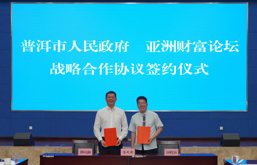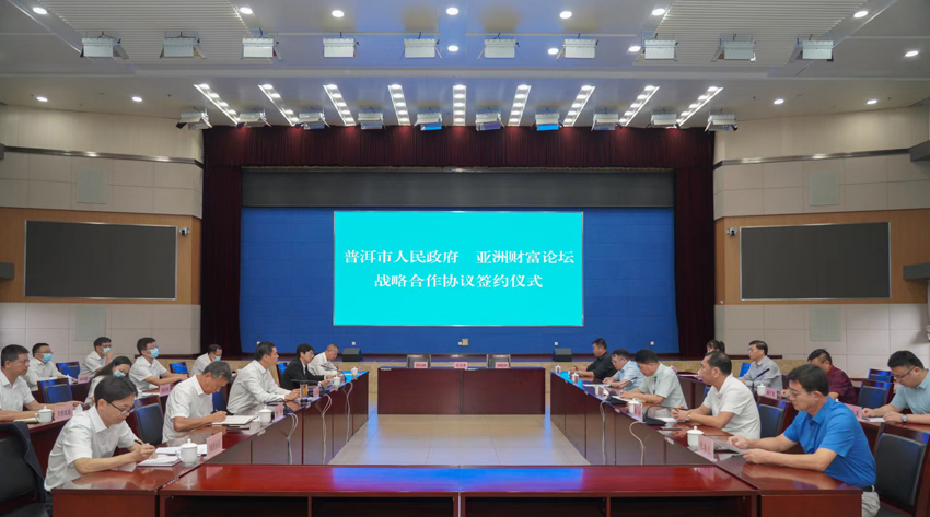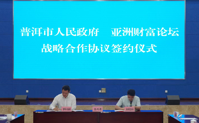 19日上午,普洱市政府与亚洲财富论坛战略合作协议签约仪式在普洱市行政中心举行。韩剑锋代表亚洲财富论坛与普洱市市长王刚签署了“普洱市与亚洲财富论坛全面战略合作协议”,市政府副市长别燕妮,市政府秘书长陈奇及市委市政府相关职能部门主要负责人出席了签约仪式,论坛随行企业代表与普洱市相关职能部门主要负责人就论坛峰会、茶咖产业、生物医药、文旅项目等合作内容进行了探讨交流。
