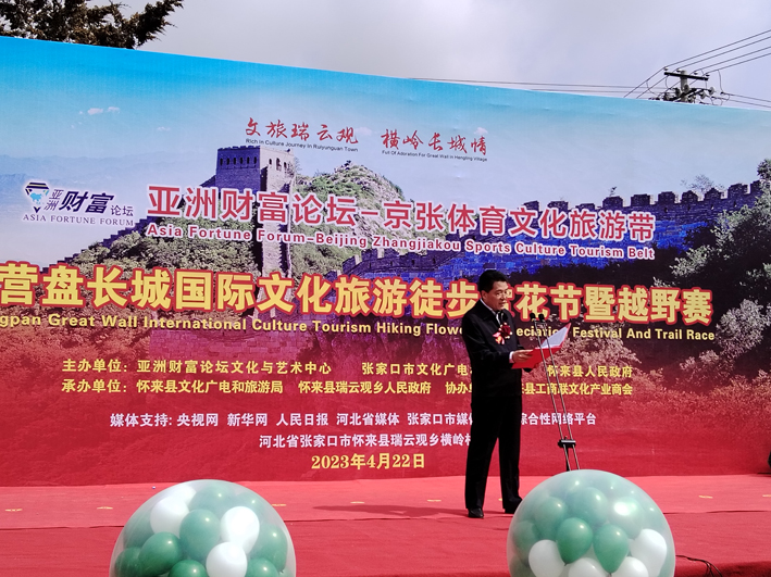人间最美四月天,怀来南山花烂漫。为响应“全民健身”号召,助力“健康中国、体育强国”战略,串联起来北京和张家口的体育、文旅资源,京张体育文化带上的景区景点借势冬奥,举办文化旅游体育相关的活动,吸引更多人走进张家口推动融合发展,打造京张体育文化旅游带桥头堡,同时更好的宣传保护,把长城文化旅游、全民健身运动推向纵深,党的二十大报告提出,坚持以文塑旅、以旅彰文,推进 文化和旅游深度融合发展。报告对文化和旅游工作作出重要 部署,充分体现了以习近平同志为核心的党中央对文化建设 和旅游发展的高度重视。由亚洲财富论坛文化与艺术中心、张家口市文化广电和旅游局、怀来县人民政府主办的以“文旅瑞云观,横岭长城情”为主题的亚洲财富论坛“大营盘长城国际旅游徒步赏花节”,于2023年4月22日在怀来县瑞云观乡横岭村拉开序幕。