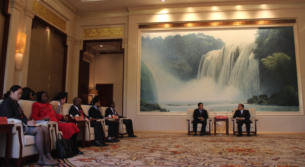 11月10日,贵州省委常委、常务副省长、贵安新区党工委第一书记秦如培会见前来出席2016贵洽会的亚洲财富论坛执行主席兼秘书长韩剑锋、埃塞俄比亚驻重庆总领事馆总领事依多·阿博纳、阿富汗商业协会主席马勒凯·纳西姆、津巴布韦驻华大使馆商务参赞萨其·卢各拿哈、科特迪瓦驻华使馆商务参赞科里巴里·简妮特、巴林驻华使馆一秘哈森·卡德汉、埃及驻华大使馆经济处二秘默罕默德·阿布达拉、马其顿驻华大使馆三秘阿迪尼·巴克利。新区党工委副书记、管委会常务副主任、综保区党工委书记曾瑜等参加会见。