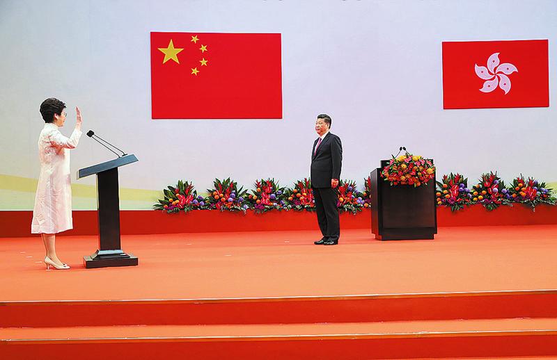 在香港期间,习近平出席了庆祝香港回归祖国20周年大会暨香港特别行政区第五届政府就职典礼,以及香港特别行政区政府欢迎晚宴和庆祝香港回归祖国20周年文艺晚会;分别会见了董建华、梁振英、林郑月娥,以及香港特别行政区行政、立法、司法机构负责人和香港社会各界代表人士,看望了中央驻港机构和主要中资机构负责人;检阅了驻香港部队;考察了香港文化建设、青少年教育和重要工程项目,同香港各界进行了广泛接触和交流。习近平还会见了前来参加庆祝活动的澳门特别行政区行政长官崔世安。