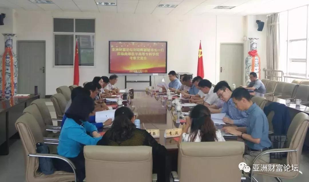 近日,在曲靖市招商合作局的陪同下,亚洲财富论坛副秘书长刘昭辉一行7人赴曲靖医专就新校区搬迁建设等合作事宜进行交流座谈。
