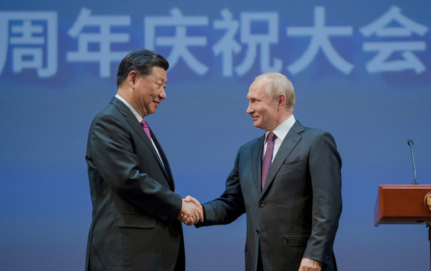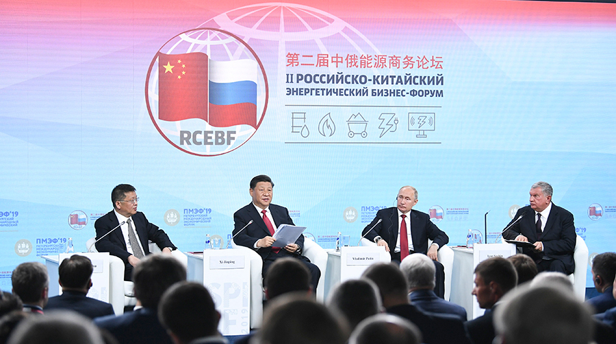 国家主席习近平在圣彼得堡同俄罗斯总统普京一道出席中俄能源商务论坛