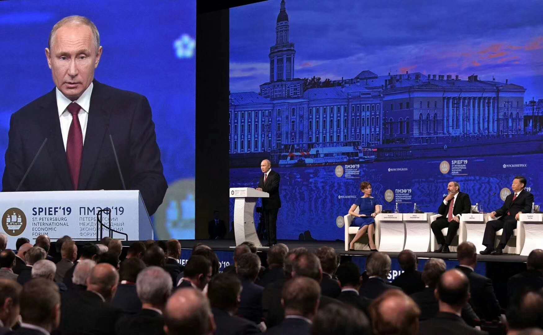 普京表示,世界形势目前出现了令人担忧的动向。自2008年国际金融危机发生以来,世界经济的结构性问题没有得到根本解决,国际贸易作为世界经济增长内生动力的功效下降,保护主义抬头。面对新兴市场国家迅速发展、在世界经济中的影响上升,一些西方国家通过挑起贸易战、推行金融霸权、动辄实施单边制裁和长臂管辖、阻挠正常教育学术交流等不正当手段进行打压。个别西方国家对中国华为公司的打压就是典型的例证。普京强调,世界上没有放之四海而皆准的发展模式,各国都有选择自身发展道路的权利,任何国家都无权把自己的意志强加于人。不平等的国际秩序不可能稳定和可持续。应当在国际社会普遍共识基础上探讨新的国际秩序,切实尊重联合国在国际事务中的核心地位,充分照顾广大发展中国家发展权益。俄罗斯愿同国际社会一道,团结应对共同的挑战。