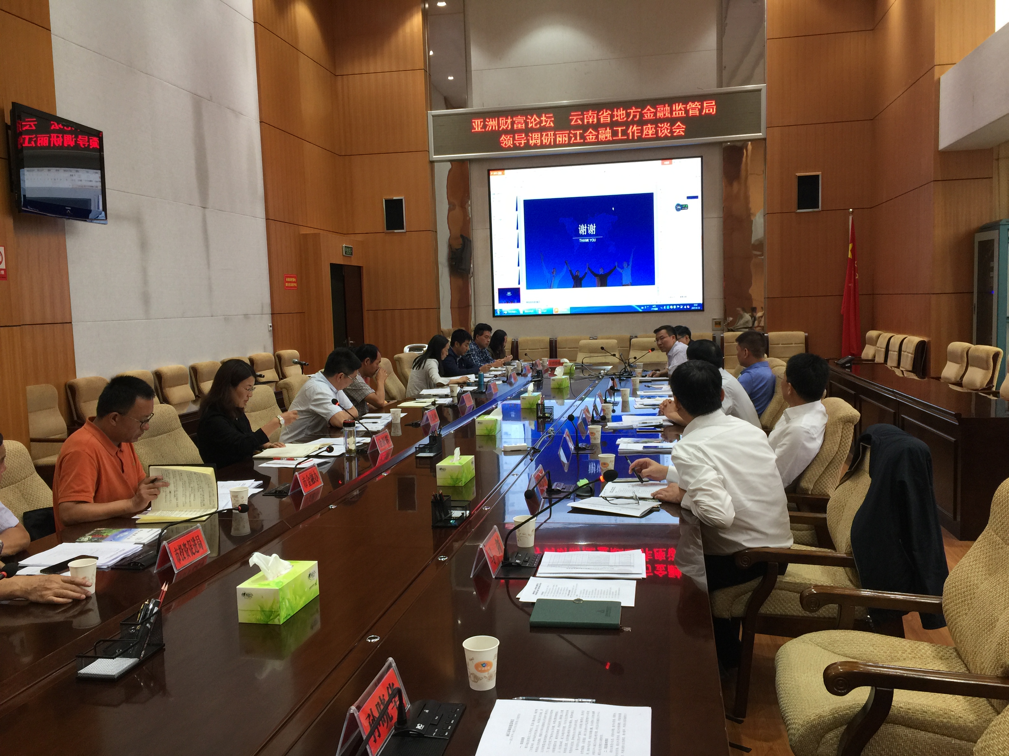 22日,亚洲财富论坛执行主席、秘书长韩剑锋同志携部分论坛民营企业代表与云南省地方金融监管局局长李春晖一行赴丽江调研并出席丽江金融工作座谈会。丽江市委书记崔茂虎,市委常委、市委秘书长金光闪,副市长金振辉,副厅级张仁彬,省地方金融监管局王硕,市发改委,市工信委,市金融办,市文旅局,民航局西南管理局,市自然资源局,市林草局,市水利局等参加座谈。