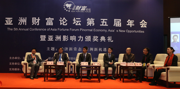 亚洲财富论坛第五届年会高峰对话主题“新常态下中国企业的创新与国际化之路”。 对话嘉宾:航美传媒集团首席品牌官欧阳国忠先生,深圳华谊互娱科技有限公司CEO贺文标先生,匹克集团董事长许景南先生。江苏东汇集团总裁赵兵先生;理想科技集团副总裁马慧女士;厦门雅瑞光学有限公司总裁黄法调先生